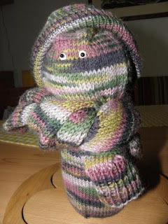 Styroporkugel und zupft so lange daran rum, bis es aussieht wie eine Mütze.
