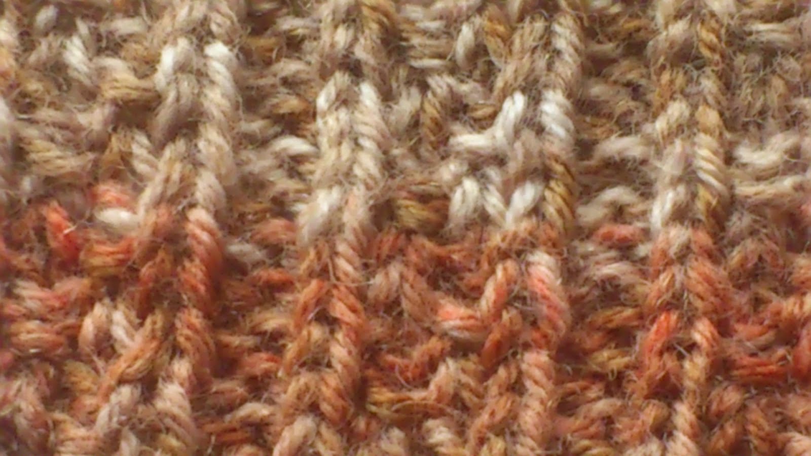 Maschen rechts, aus dem Querfaden eine Masche rechts verschränkt stricken, 1